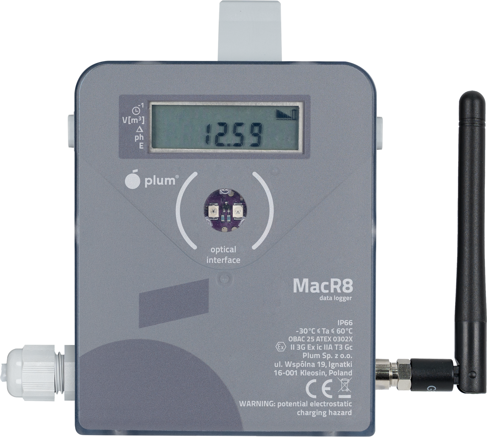 Depending on the communication protocol, alarms can be configured in the data logger. When they are triggered, the device sends a report. The following alarms can be configured: magnetic tampering, gas meter replacement, poor GSM service. The data logger's basic version is designed to operate in explosion zone II.